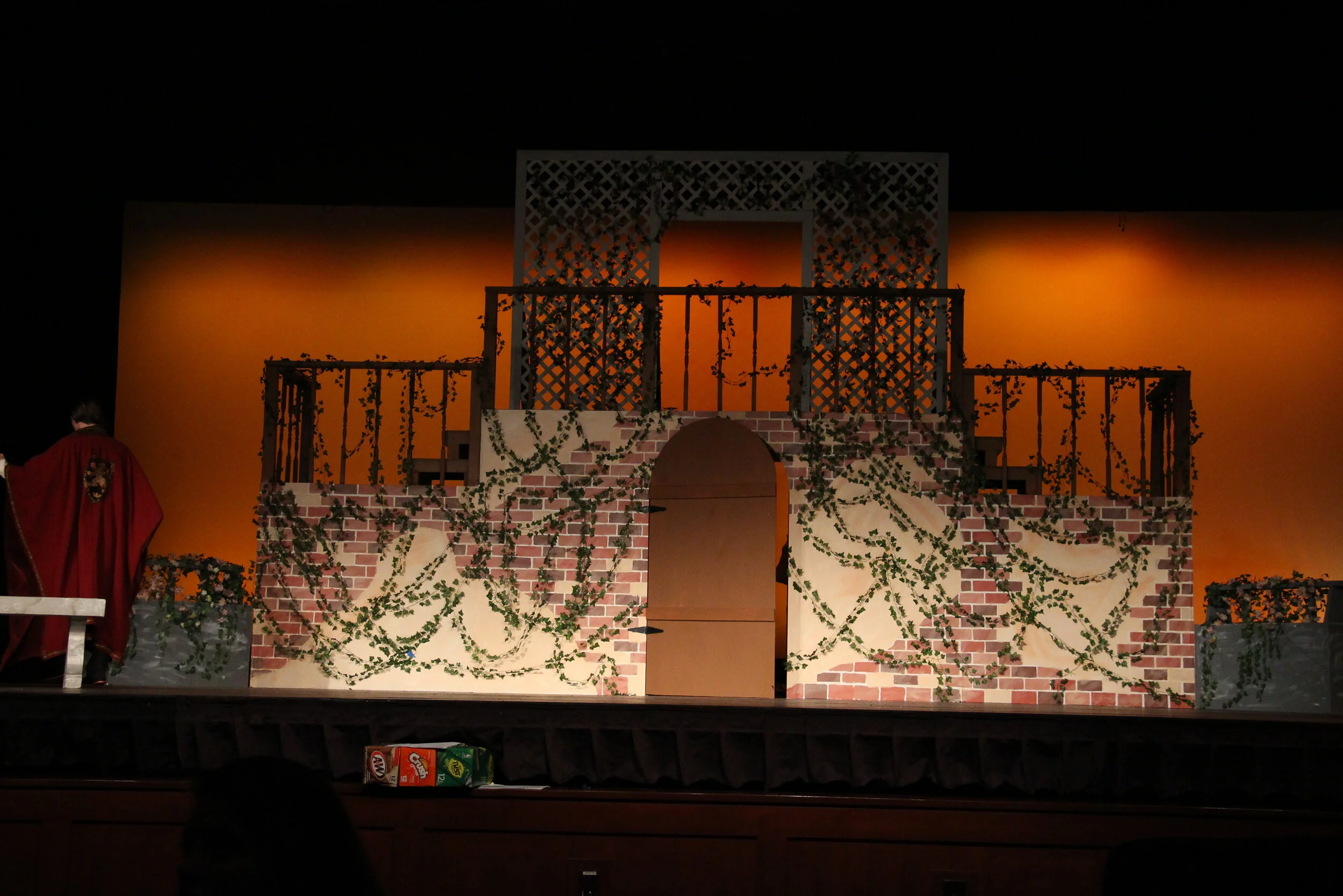 Description: I designed this set to resemble an Italian “brick and stucco” house that had started to become overgrown with various vines and flowers. I used our back cyc and cloud machines to control time of day, and to add some vibrancy to the scene.